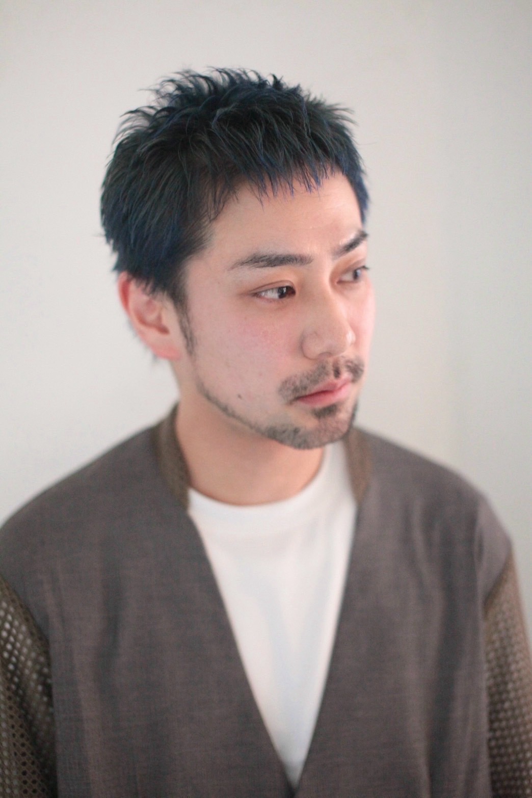 あえて刈り上げないベリーショートが今っぽい。ネイビーブルーで落ち着いたポイントがあるカラー。