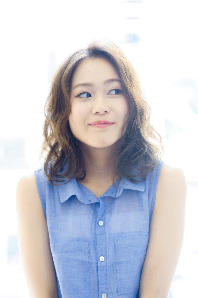 平巻きウェーブに軽さをだしてふわっと動く鎖骨ミディ カラーは赤みを抑えたベージュカラーで柔らかく外人風な ニュアンスがだせます!